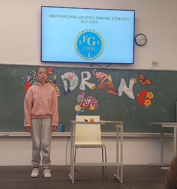 Dana 2. veljače u Gimnaziji Fran Galović u Koprivnici održana je međuopćinska smotra LiDraNo na kojoj su sudjelovale naše učenice pod mentorstvom učiteljice Hrvatskoga jezika Maje Matijašec. U dramskom izričaju Magdalena Hunjec (5. r.) izvela je monolog „Matilda“ Roalda Dahla, a Lana Fišer (7. r.) monolog „Poslovice i problemi“ Sanje Pilić. U literarnom stvaralštvu istaknule su se Klara Hunjec (8. r.) i Ena Mlinar (8. r.) pjesmama „Novi dan“ i „Kasno je“.