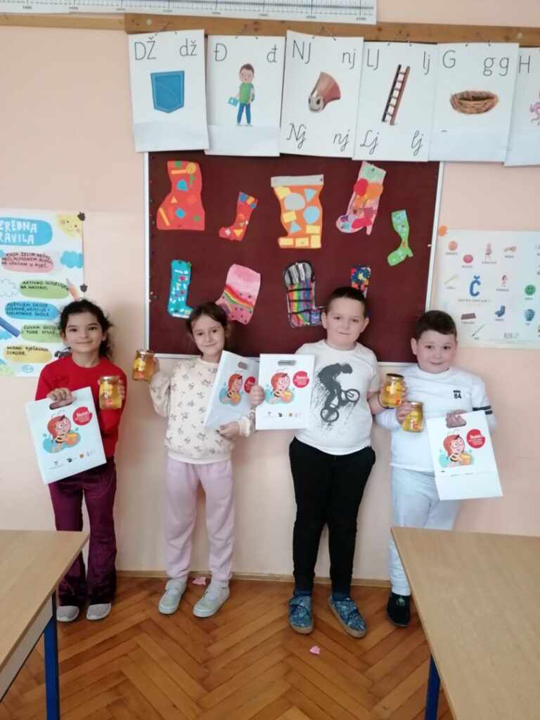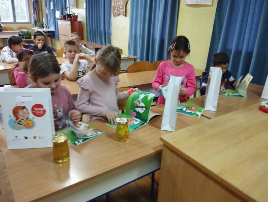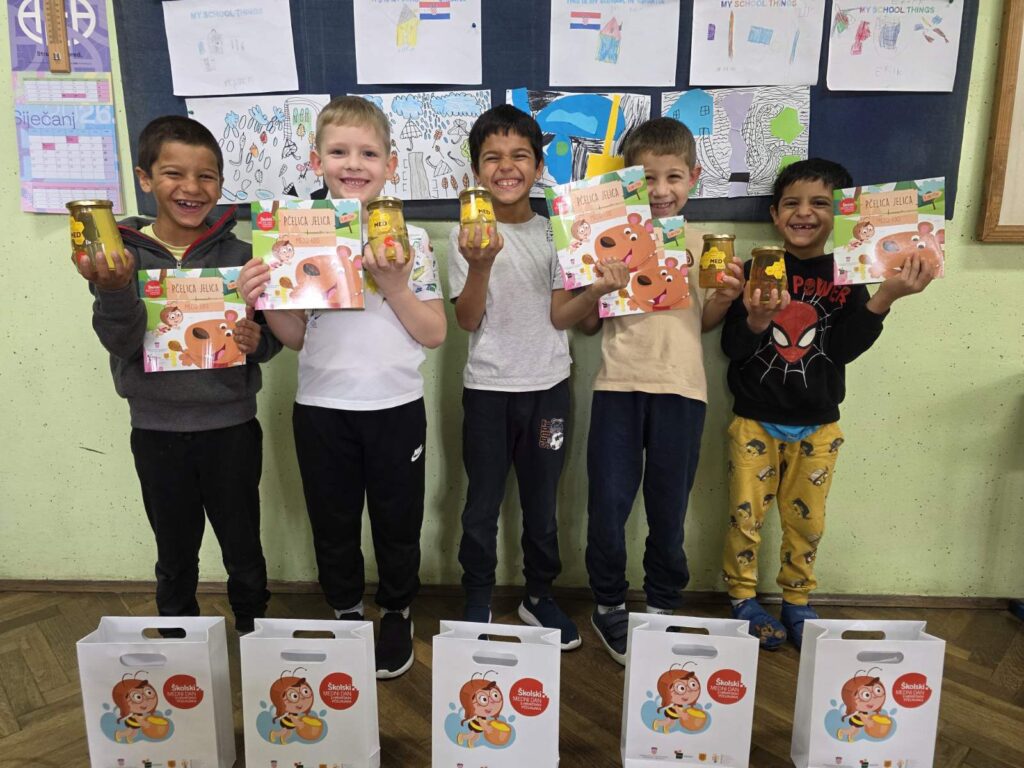 Uz med, učenici su dobili i prigodnu slikovnicu „Pčelica Jelica i Medo Edo“, kroz koju na zanimljiv i pristupačan način mogu naučiti još više o svijetu pčela, medu i važnosti očuvanja prirode. S velikim uzbuđenjem listali su slikovnicu i komentirali dogodovštine simpatičnih likova.