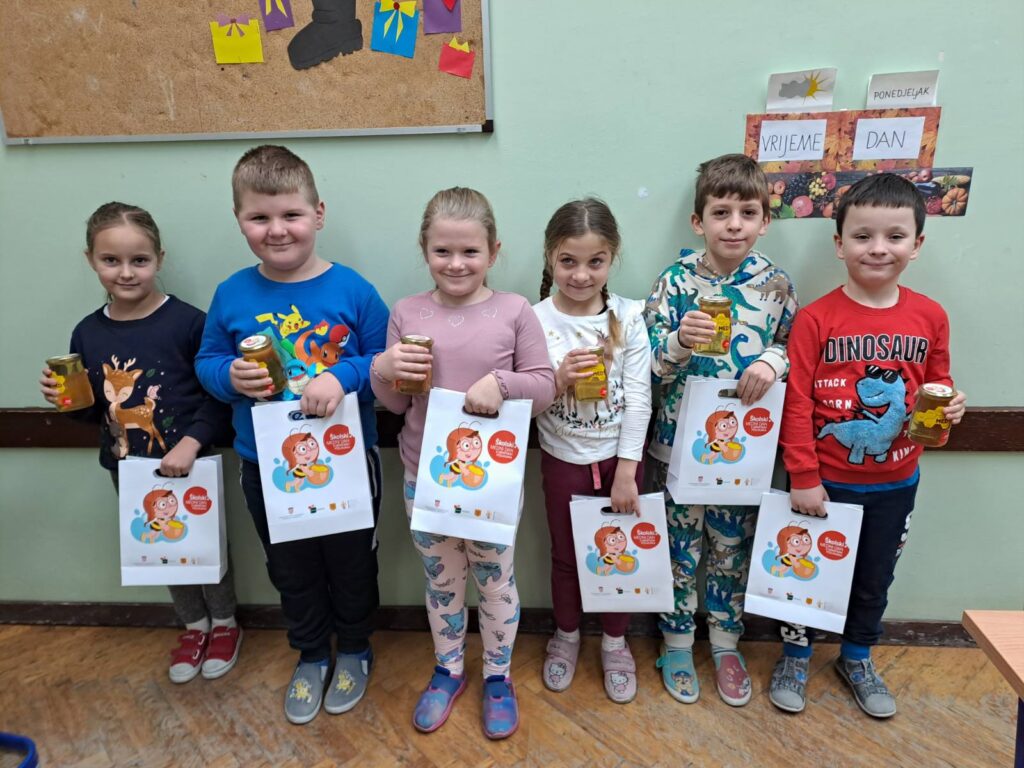 U sklopu programa učenicima su podijeljene staklenke meda porijeklom s hrvatskih pčelinjaka, čime se potiče konzumacija domaćih i kvalitetnih proizvoda. Djeca su s velikim zanimanjem poslušala kratko predavanje o tome kako nastaje med, zašto su pčele važne te kako možemo pomoći u njihovoj zaštiti.