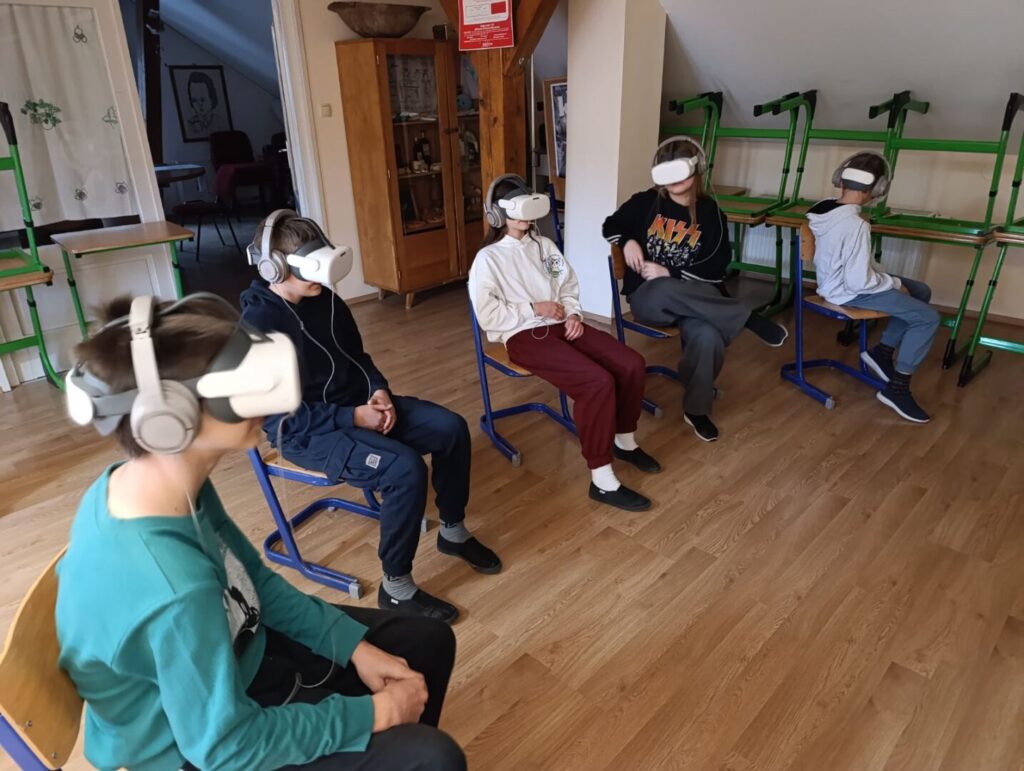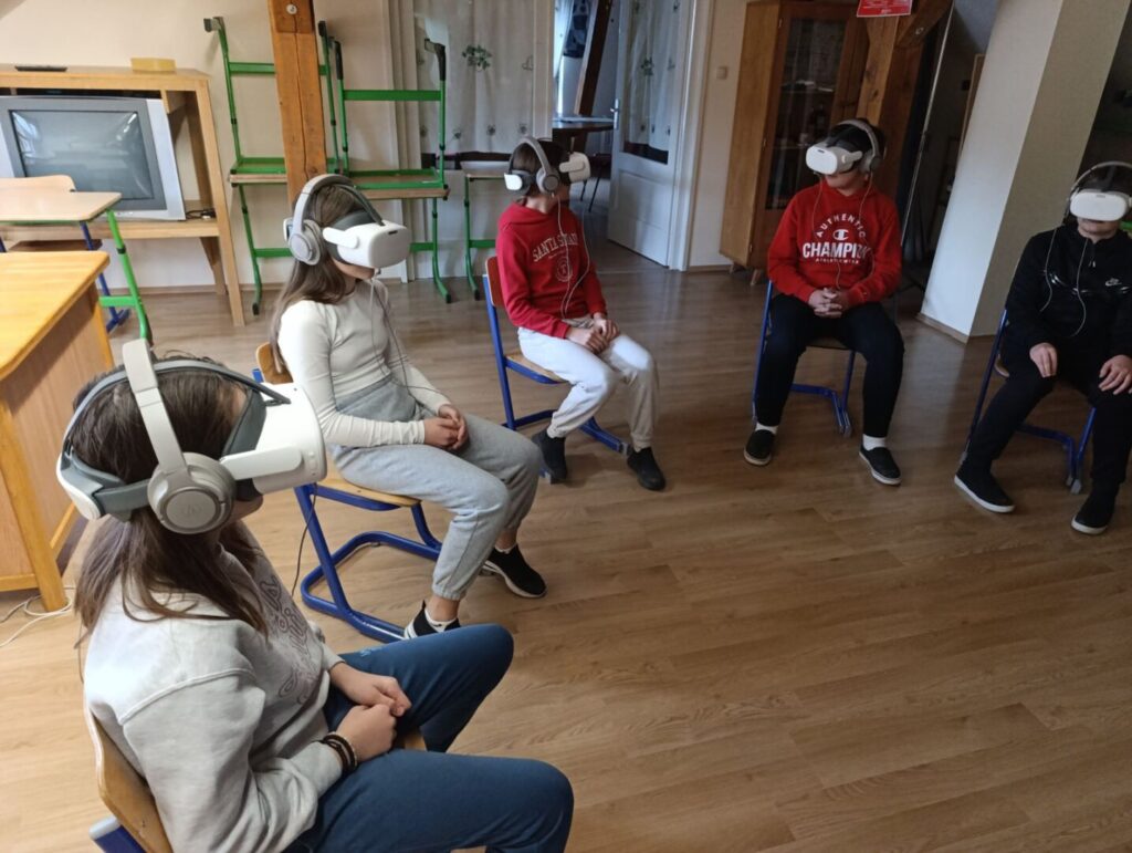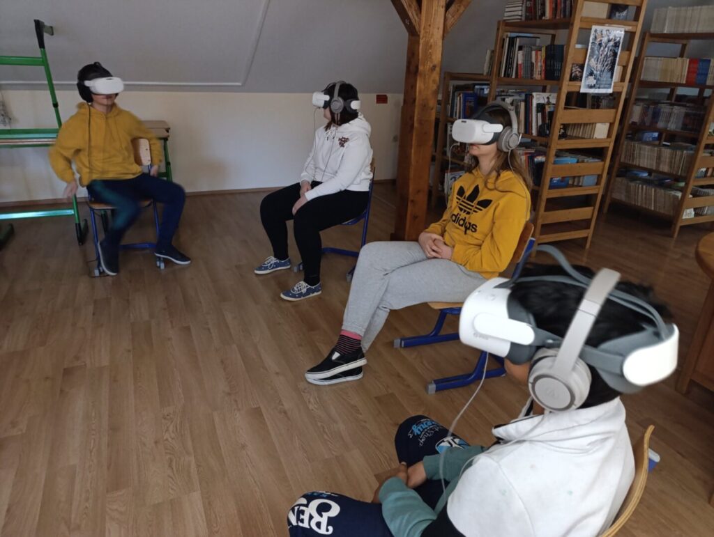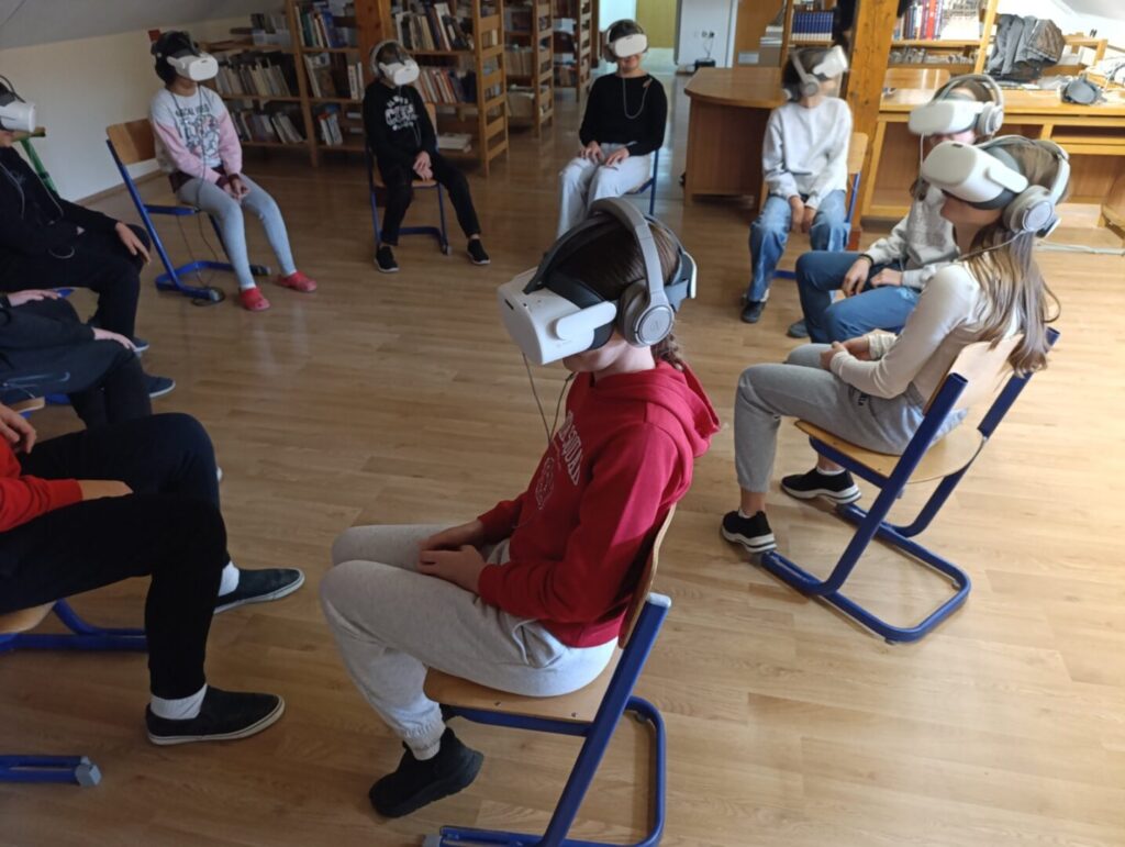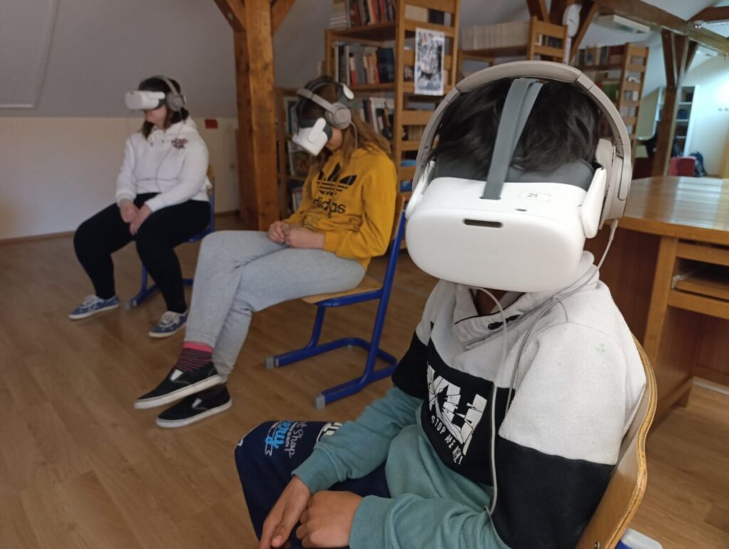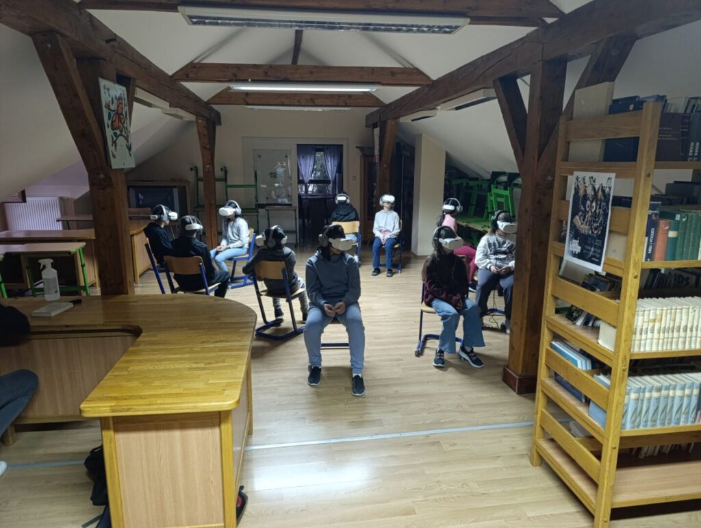 U srijedu 3. prosinca, učenici viših razreda imali su priliku doživjeti jedinstveno audiovizualno iskustvo zahvaljujući gostovanju VR kina Kek. Mobilna VR postava pretvorila je školsku knjižnicu u malu kino dvoranu, a učenici su uz pomoć VR naočala, pogledali dva edukativna filma.